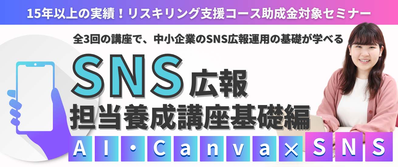 中小企業のSNS広報を成功に導くリーダー人材を養成します。3日間の凝縮された講座で、マーケティングの基礎から即実践できる投稿ノウハウまで習得可能です。