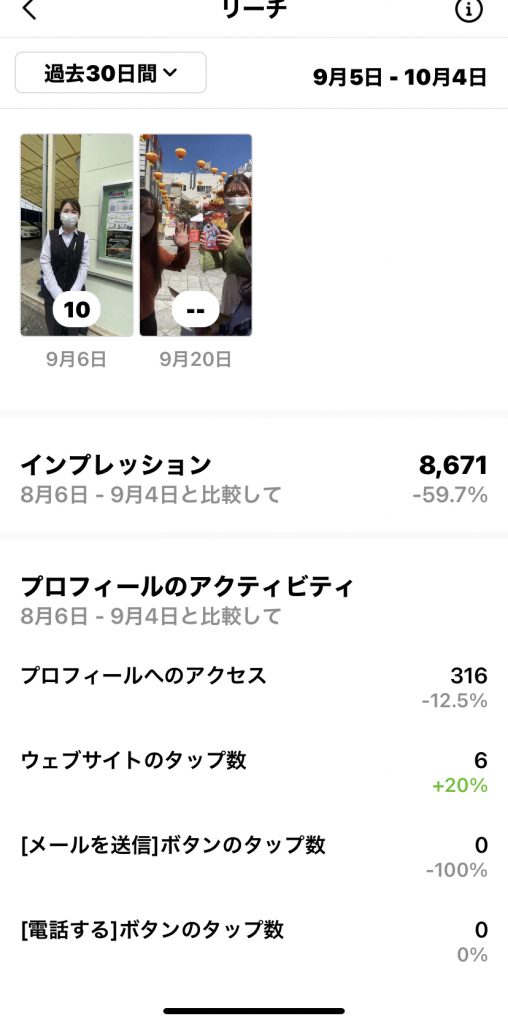 こちらの方もあまり変化のない状況で、リーチ数は、減っています。