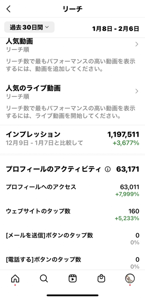 そこからプロフィール→WEBサイトのタップまで到達しているものが個々直近で160ほどありました。