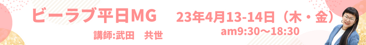 ビーラブ平日MGからレディースMG、東京MG、京都MGと色々な方と交流をし学ばせていただいております。
