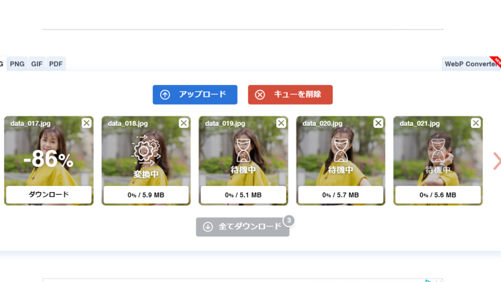 そして、JPEGだけではなく、PNG、GIF、PDFも変換してくれます。
