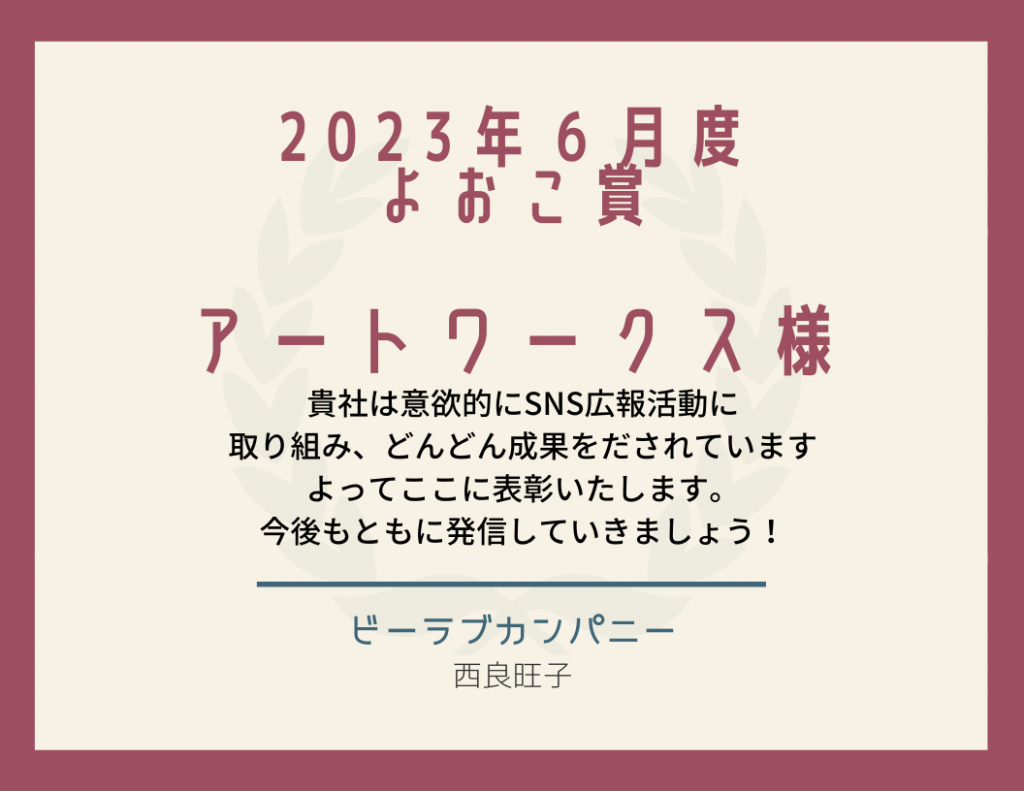 (よおこ賞とは・・・毎月、SNS広報を頑張っている会社を勝手に表彰している制度。)