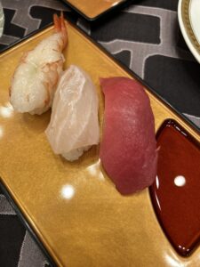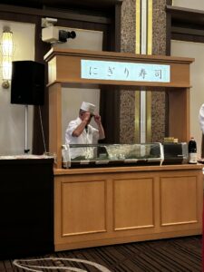 にぎり寿司やステーキなど、青森の味覚を堪能しました。