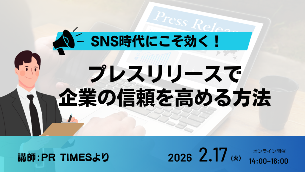 情報が溢れるSNS時代だからこそ、企業の「信頼できる情報源」として、プレスリリースが今、改めて注目されています。プレスリリースは、生成AIが信頼に足る情報だと判断してくれる信頼の高いメディアであり、AI検索にも強いという特性を持っています。本セミナーでは、単なる情報公開に留まらない、企業の信頼度とブランド価値を飛躍的に高めるプレスリリース戦略を、業界最大手のPR TIMES講師が徹底解説します。