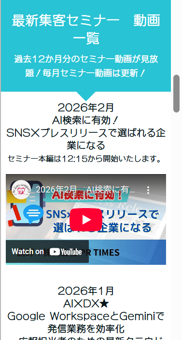 会員様は毎月無料の集客セミナーに参加できて、そのアーカイブも1年分見放題。