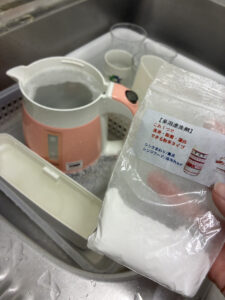 洗剤とお湯を入れて、しばらく「つけ置き」。