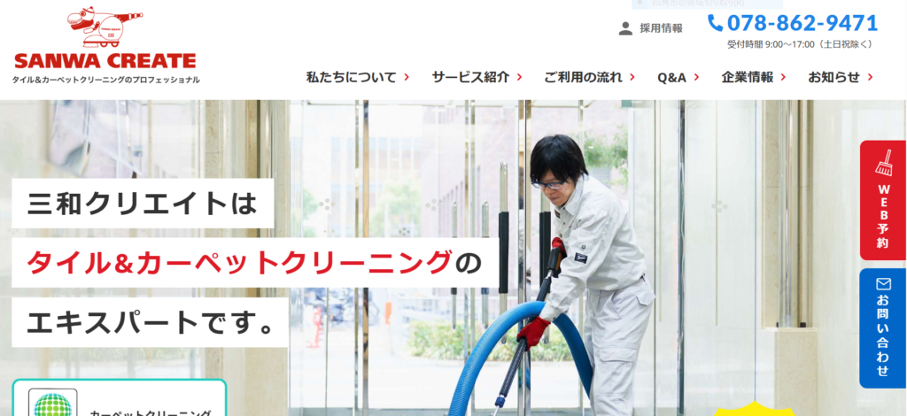 三和クリエイトさんは、カーペットクリーニングやタイル洗浄、エアコンクリーニングなど、オフィスや店舗の清掃を行っている会社で、専門機材と技術で快適な空間づくりを支えておられます。
