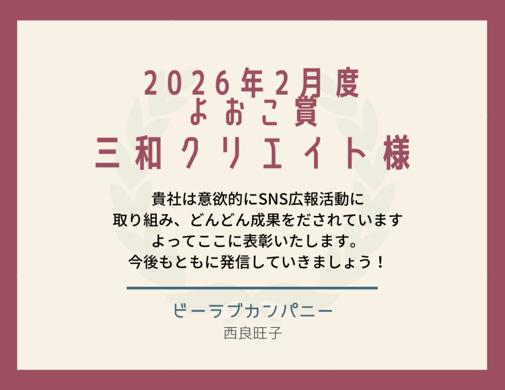 2月のよおこ賞は三和クリエイトさん。仕事を見せるSNS!そして継続力!