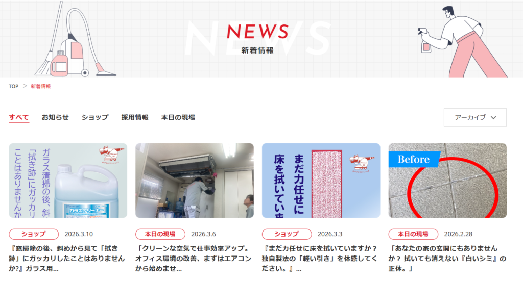 日々の仕事や清掃の現場、会社の取り組みなどを、コツコツと発信されています。