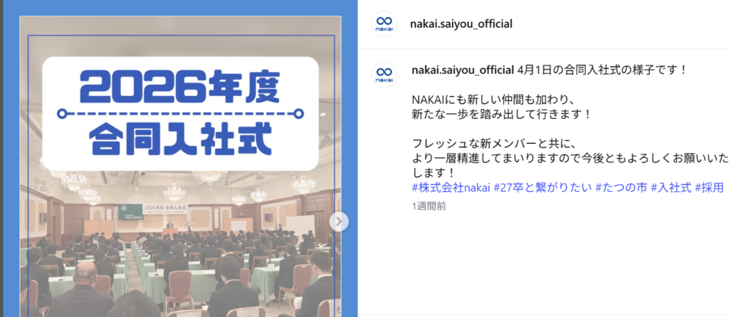 まずは、(株)NAKAIの新宮さん。NAKAIさんのアカウントの目的は採用。